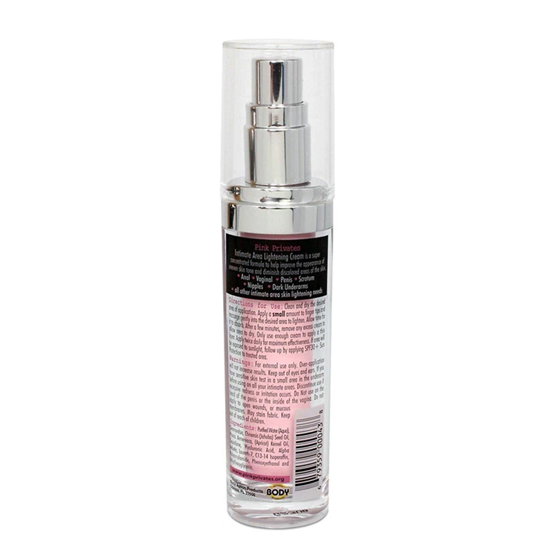 Pink Privates Lightening Cream 1oz BA1426-00 está formulado con ingredientes avanzados que iluminan y blanquean las zonas más sensibles de tu cuerpo. Esta crema actúa directamente sobre las áreas con pigmentación irregular, como la piel de la zona íntima, axilas y otras áreas delicadas. A lo largo del uso continuo, notarás cómo la piel se vuelve visiblemente más clara y suave.